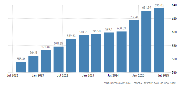 According to New York Fed, Credit Card Accounts in the United States increased to 549.87 Million in the second quarter of 2022 from 537.11 Million in the first quarter of 2022.